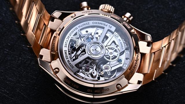 在机芯方面,内部的El Primero 3600 SK自动上链机芯并没有因为镂空处理而在性能上做出取舍,一切均以不牺牲结构稳定性与计时精度为前提。